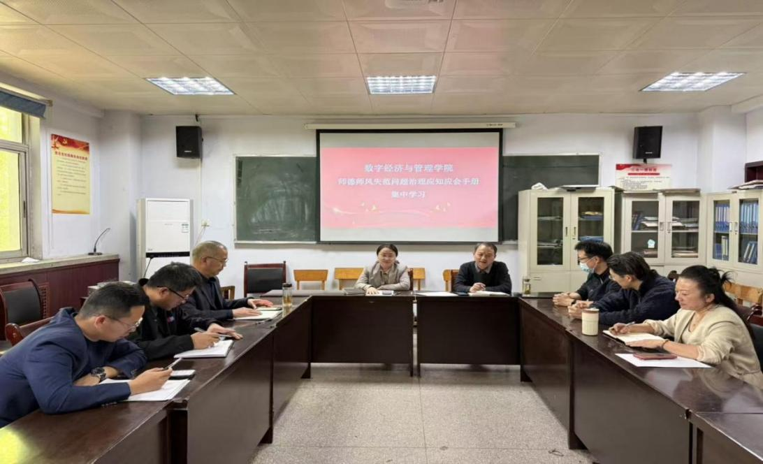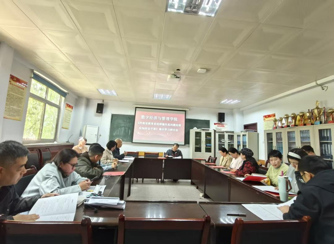 为深入贯彻落实河南省教育系统师德师风建设相关部署,进一步规范教师职业行为,提升教师队伍职业道德水平,近日,数字经济与管理学院分层推进《河南省教育系统师德失范问题治理应知应会手册》(以下简称《手册》)专题学习研讨活动。